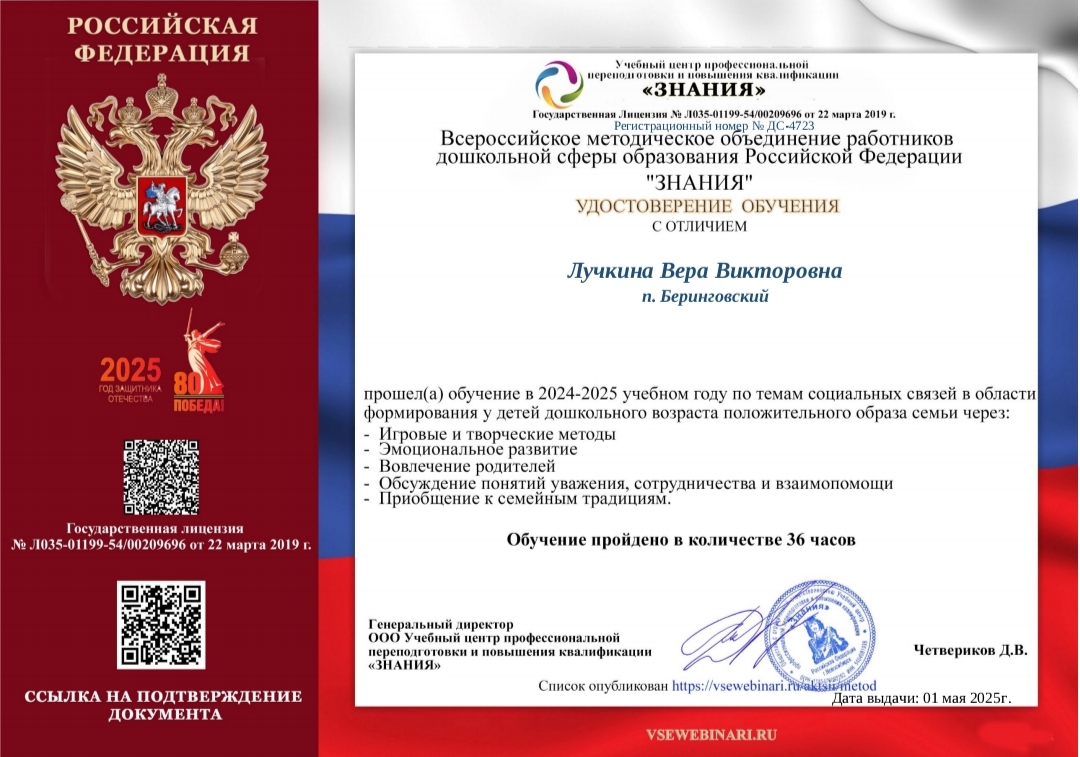 - Удостоверение обучения от 01.05.2025г.